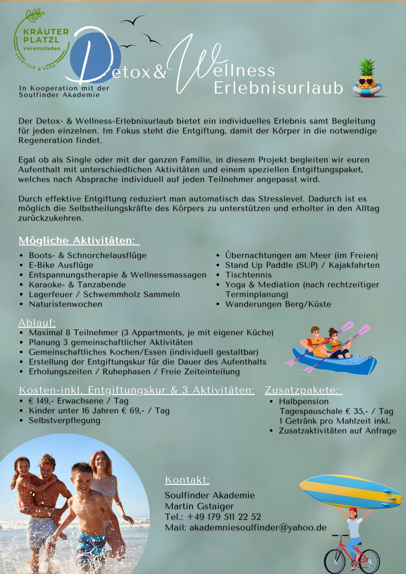 In Kooperation mit der Soulfinder Akademie haben wir das Projekt eröffnet und es steht dabei die Entgiftung sowie Erholung an vorderster Stelle, damit man so gestärkt und erfrischt als nur möglich in den Alltag zurückkehren kann.